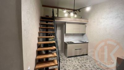Свободная планировка, благодаря высоким потолкам 3,4 метра, спальное место организованно на втором уровне, встроенная кухня оборудованная всей необходимой техникой.