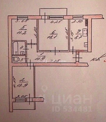 Общая площадь- 71,6 кв.м., комнаты -18,1кв м,11,2кв м и 13,9 кв.м., кухня -8,7 кв.м.