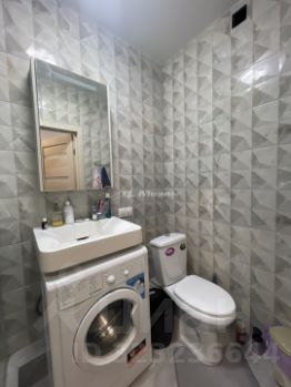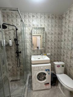 Санузел совмещен в новом кафеле, теплая стена для сушки белья, встроена стиральная машина.