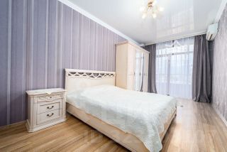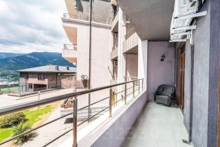 Просторная и светлая квартира площадью 63 м² (фактическая 67,5 м²) с большой лоджией 8,7 м², откуда открывается живописный вид на горы.