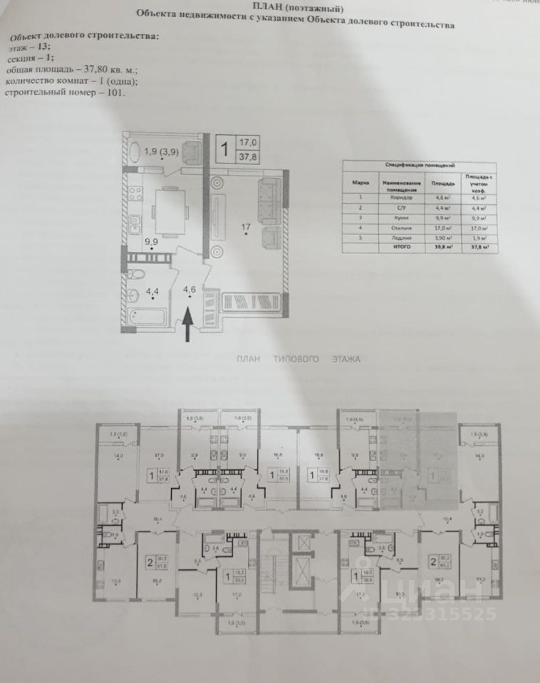 Собственник Продает уютную однокомнатную квартиру площадью 37,8 кв. м. на 13-м этаже 19-этажного дома.