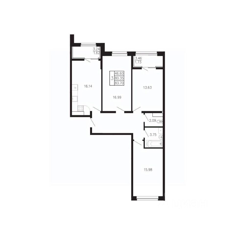 Общая площадь83,7 м²
