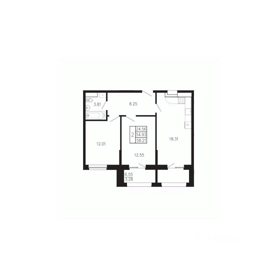 Общая площадь58,21 м²