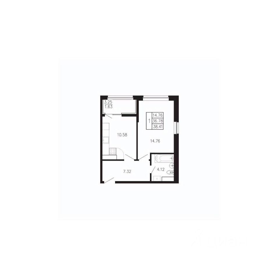Общая площадь38,41 м²