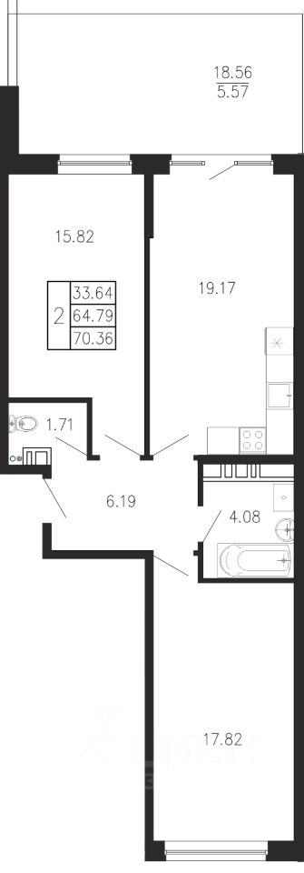 Общая площадь70,36 м²