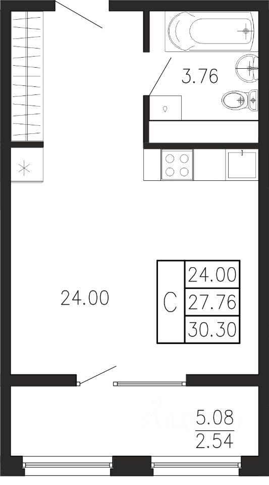 Общая площадь30,3 м²