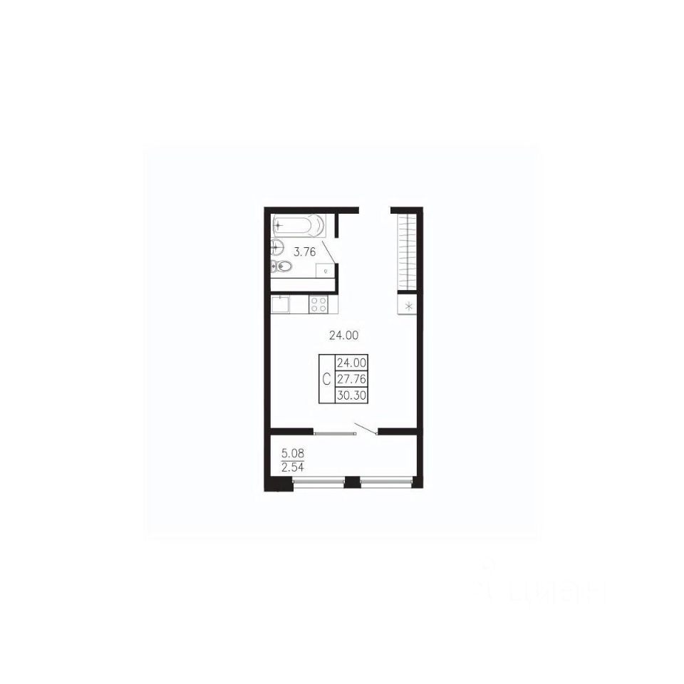 Общая площадь30,3 м²