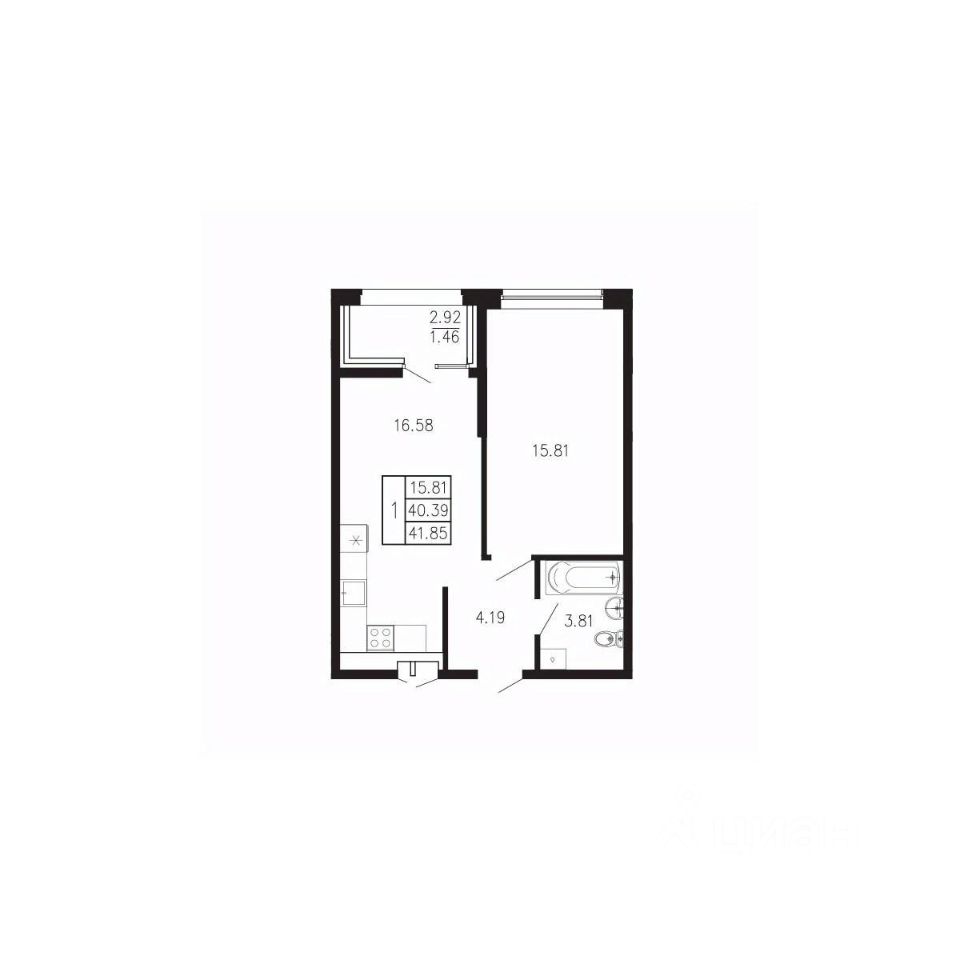 Общая площадь41,85 м²