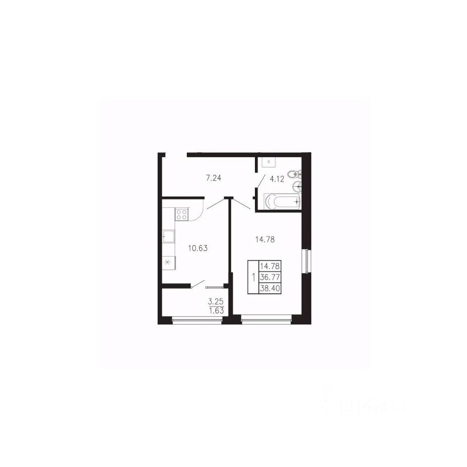 Общая площадь38,4 м²