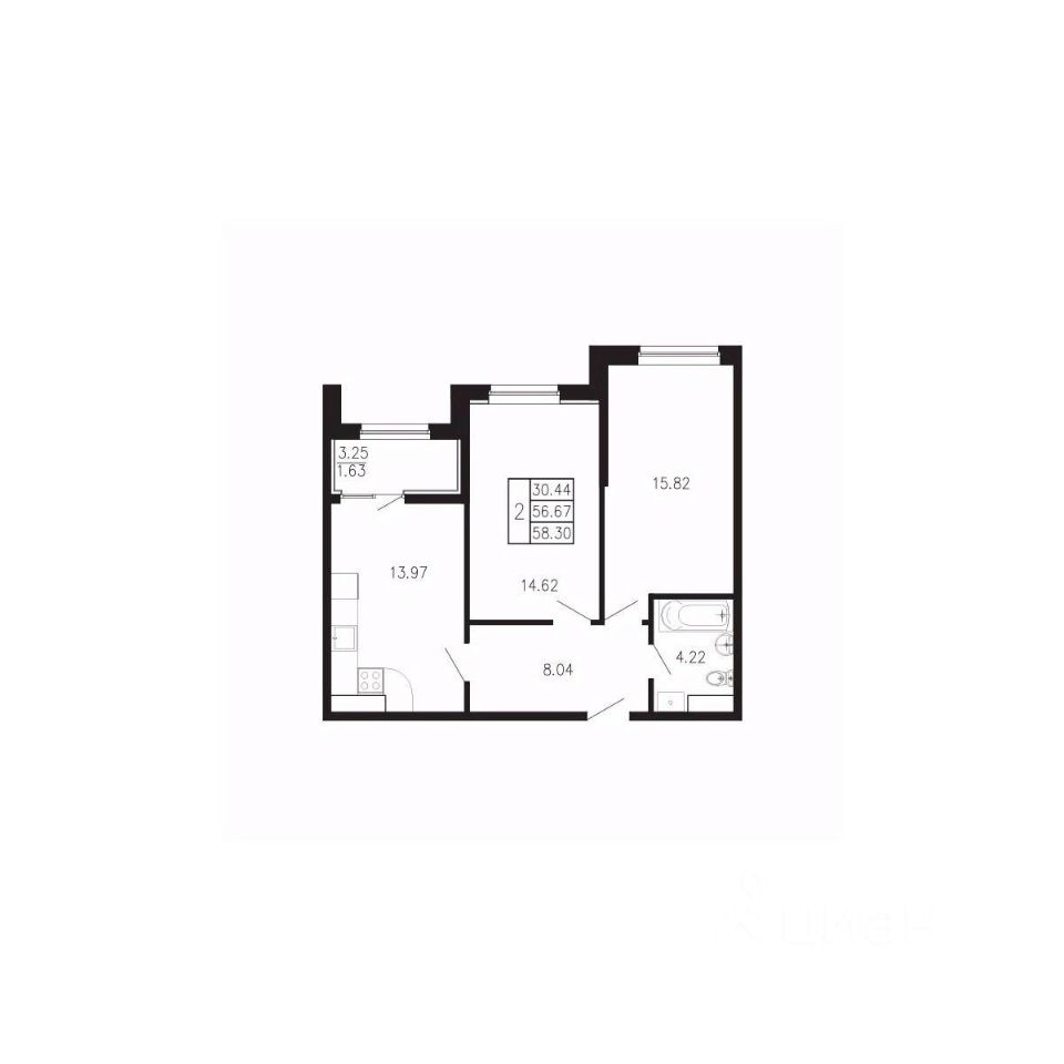 Общая площадь58,3 м²