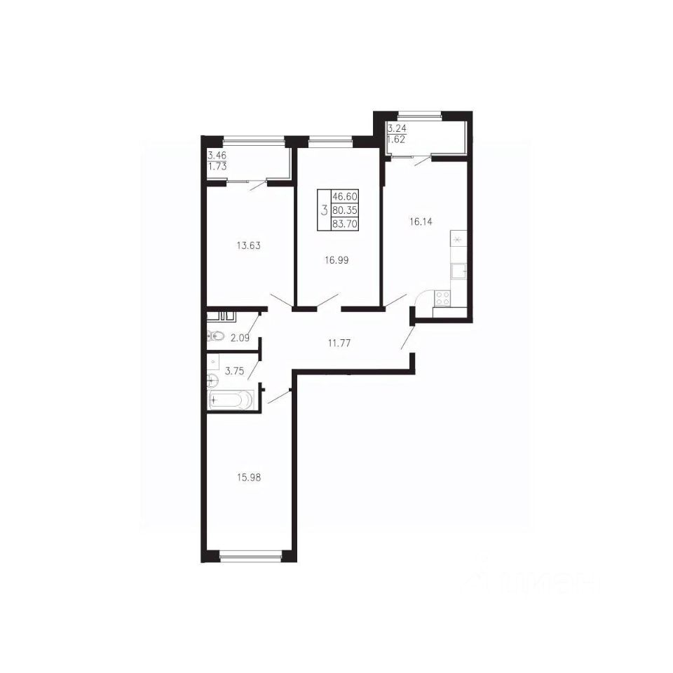 Общая площадь83,7 м²
