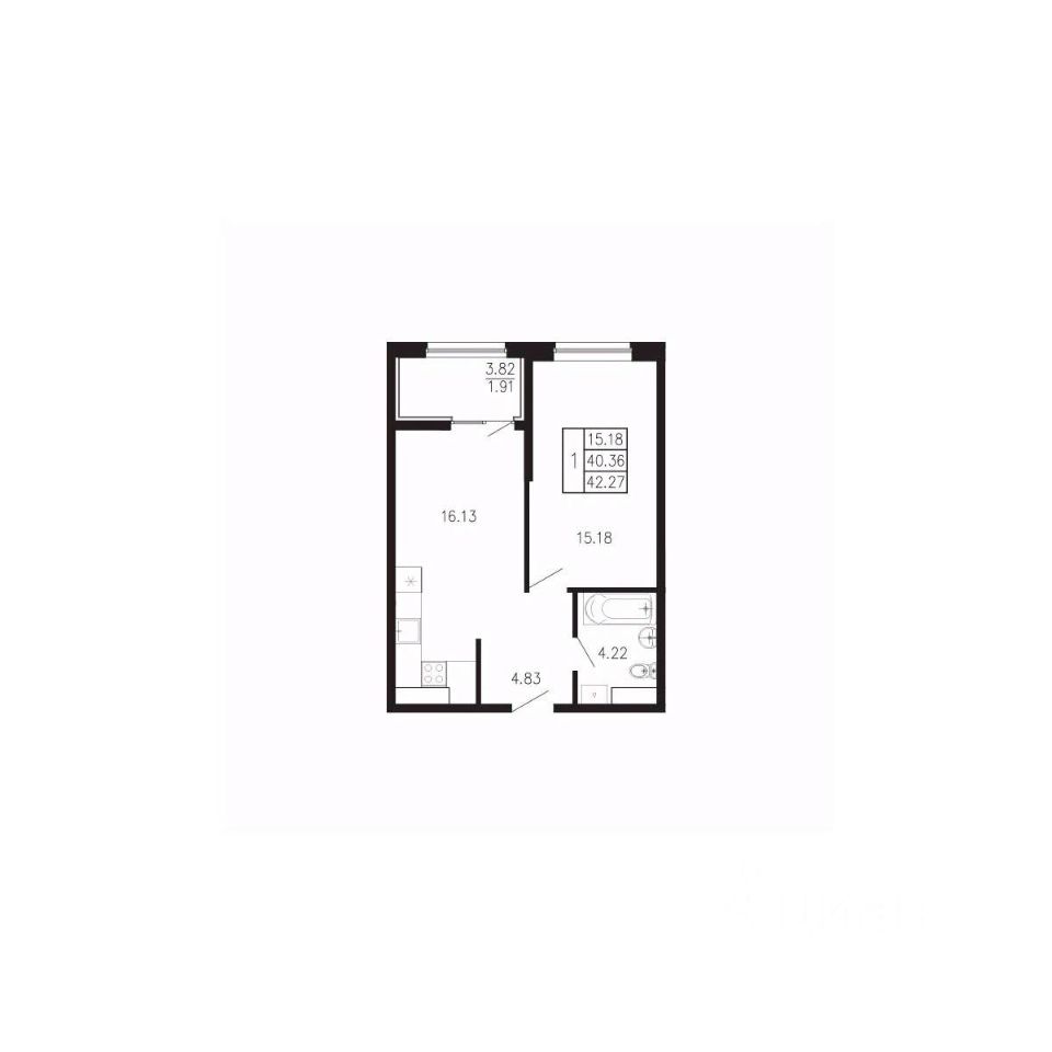 Общая площадь42,27 м²
