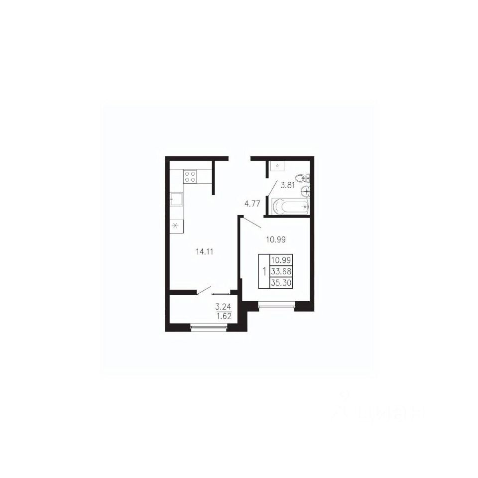 Общая площадь35,3 м²