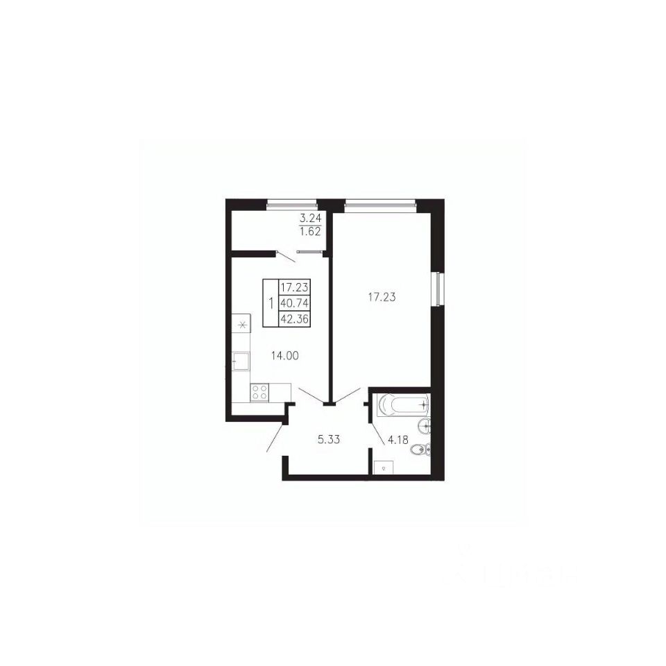 Общая площадь42,36 м²