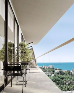 Просторная планировка: Апартаменты имеют продуманную эргономичную планировку, обеспечивающую максимальный комфорт и удобство эксплуатации. Современные оконные раздвижные конструкции открывают потрясающий вид на море и горы, дарят ощущение простора и свободы.
