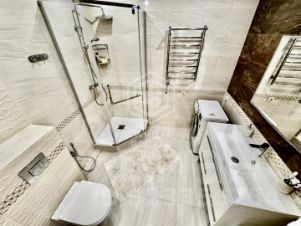 В квартире теплые электрические полы, большие окна в пол, стильные шторы и телевизоры в каждой комнате. Кондиционер с функцией охлаждения и обогрева обеспечит комфорт в любое время года.