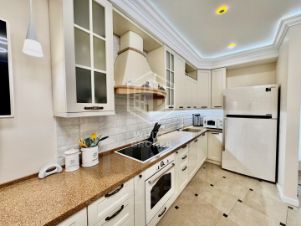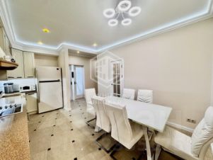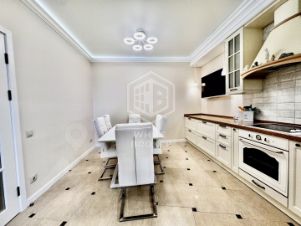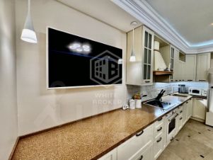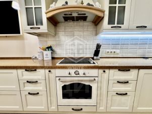 В квартире продуманная входная зона с функциональным шкафом-купе и просторной гардеробной. Современная кухня укомплектована варочной панелью, духовым шкафом, полноразмерной посудомоечной машиной и большим холодильником. Для вашего удобства установлены многоступенчатая система фильтрации воды и измельчитель отходов. Уютный стол на 8 человек — для комфортных совместных ужинов.