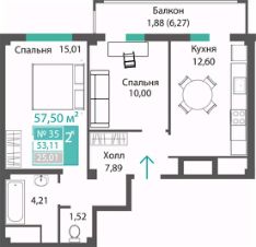 Продаётся 2-комнатная квартира в строящемся доме (ЭТАП 4, СЕКЦИИ Г1, Г2, Г3, Г4), срок сдачи: III-кв. 2028, общей площадью 53.11 кв.м., на 6 этаже. Новый жилой комплекс "Семейный квартал ПРОПОЛИС" от застройщика "Монолит" расположен по адресу: Республика Крым, Симферопольский район, с. Мирное, ул. Учительская