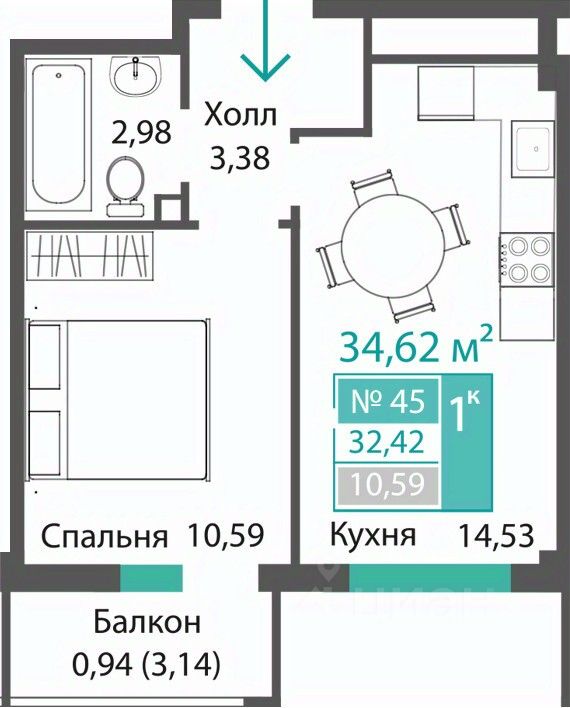 Продаётся 1-комнатная квартира в строящемся доме (ЭТАП 4, СЕКЦИИ Г1, Г2, Г3, Г4), срок сдачи: III-кв. 2028, общей площадью 32.42 кв.м., на 8 этаже. Новый жилой комплекс "Семейный квартал ПРОПОЛИС" от застройщика "Монолит" расположен по адресу: Республика Крым, Симферопольский район, с. Мирное, ул. Учительская