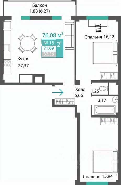 Продаётся 2-комнатная квартира в строящемся доме (ЭТАП 1, СЕКЦИИ А1, А2, А3), срок сдачи: III-кв. 2028, общей площадью 71.69 кв.м., на 4 этаже. Новый жилой комплекс "Семейный квартал ПРОПОЛИС" от застройщика "Монолит" расположен по адресу: Республика Крым, Симферопольский район, с. Мирное, ул. Учительская