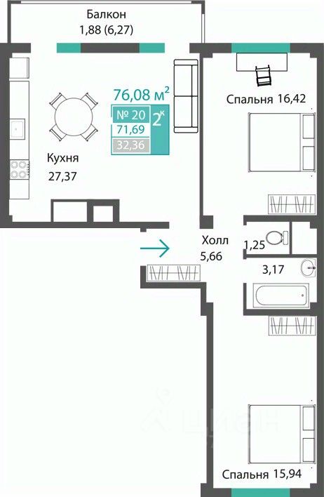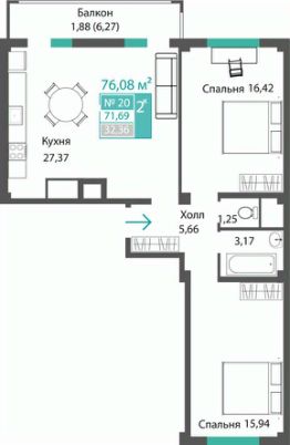 Продаётся 2-комнатная квартира в строящемся доме (ЭТАП 1, СЕКЦИИ А1, А2, А3), срок сдачи: III-кв. 2028, общей площадью 71.69 кв.м., на 5 этаже. Новый жилой комплекс "Семейный квартал ПРОПОЛИС" от застройщика "Монолит" расположен по адресу: Республика Крым, Симферопольский район, с. Мирное, ул. Учительская