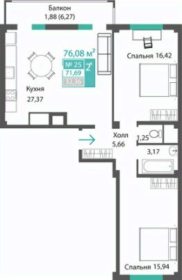 Продаётся 2-комнатная квартира в строящемся доме (ЭТАП 1, СЕКЦИИ А1, А2, А3), срок сдачи: III-кв. 2028, общей площадью 71.69 кв.м., на 6 этаже. Новый жилой комплекс "Семейный квартал ПРОПОЛИС" от застройщика "Монолит" расположен по адресу: Республика Крым, Симферопольский район, с. Мирное, ул. Учительская