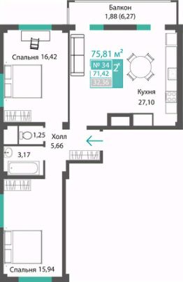 Продаётся 2-комнатная квартира в строящемся доме (ЭТАП 1, СЕКЦИИ А1, А2, А3), срок сдачи: III-кв. 2028, общей площадью 71.42 кв.м., на 7 этаже. Новый жилой комплекс "Семейный квартал ПРОПОЛИС" от застройщика "Монолит" расположен по адресу: Республика Крым, Симферопольский район, с. Мирное, ул. Учительская