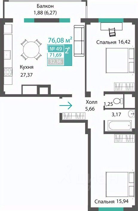 Продаётся 2-комнатная квартира в строящемся доме (ЭТАП 1, СЕКЦИИ А1, А2, А3), срок сдачи: III-кв. 2028, общей площадью 71.69 кв.м., на 3 этаже. Новый жилой комплекс "Семейный квартал ПРОПОЛИС" от застройщика "Монолит" расположен по адресу: Республика Крым, Симферопольский район, с. Мирное, ул. Учительская