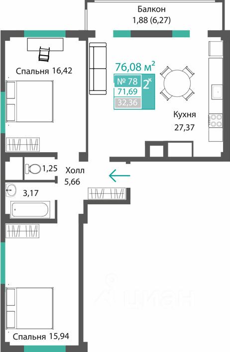 Продаётся 2-комнатная квартира в строящемся доме (ЭТАП 1, СЕКЦИИ А1, А2, А3), срок сдачи: III-кв. 2028, общей площадью 71.69 кв.м., на 8 этаже. Новый жилой комплекс "Семейный квартал ПРОПОЛИС" от застройщика "Монолит" расположен по адресу: Республика Крым, Симферопольский район, с. Мирное, ул. Учительская