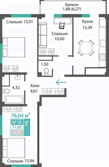 Продаётся 3-комнатная квартира в строящемся доме (ЭТАП 3, СЕКЦИИ В1, В2, В3), срок сдачи: III-кв. 2028, общей площадью 71.65 кв.м., на 8 этаже. Новый жилой комплекс "Семейный квартал ПРОПОЛИС" от застройщика "Монолит" расположен по адресу: Республика Крым, Симферопольский район, с. Мирное, ул. Учительская
