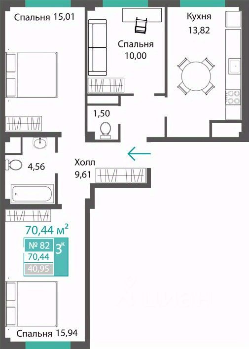 Продаётся 3-комнатная квартира в строящемся доме (ЭТАП 3, СЕКЦИИ В1, В2, В3), срок сдачи: III-кв. 2028, общей площадью 70.44 кв.м., на 1 этаже. Новый жилой комплекс "Семейный квартал ПРОПОЛИС" от застройщика "Монолит" расположен по адресу: Республика Крым, Симферопольский район, с. Мирное, ул. Учительская