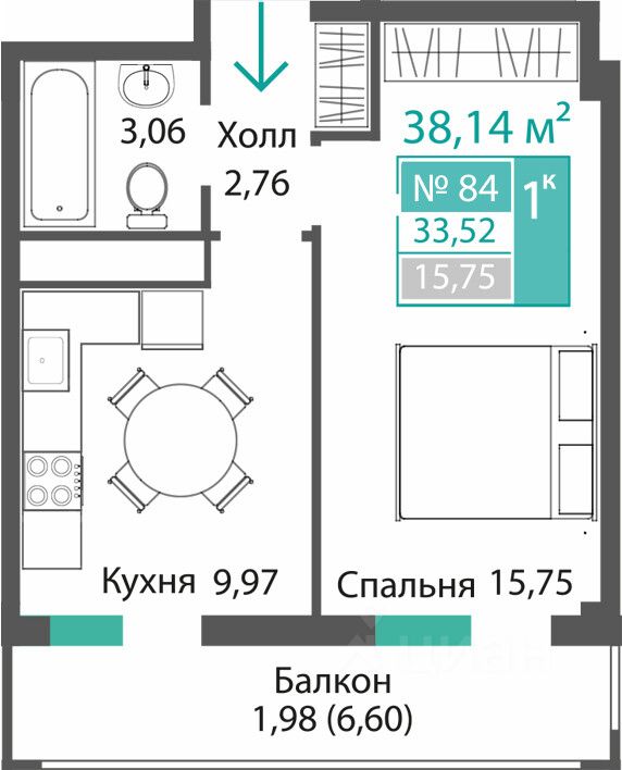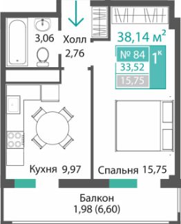 Продаётся 1-комнатная квартира в строящемся доме (ЭТАП 3, СЕКЦИИ В1, В2, В3), срок сдачи: III-кв. 2028, общей площадью 33.52 кв.м., на 2 этаже. Новый жилой комплекс "Семейный квартал ПРОПОЛИС" от застройщика "Монолит" расположен по адресу: Республика Крым, Симферопольский район, с. Мирное, ул. Учительская