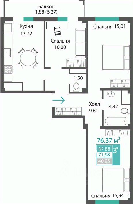 Продаётся 3-комнатная квартира в строящемся доме (ЭТАП 3, СЕКЦИИ В1, В2, В3), срок сдачи: III-кв. 2028, общей площадью 71.98 кв.м., на 3 этаже. Новый жилой комплекс "Семейный квартал ПРОПОЛИС" от застройщика "Монолит" расположен по адресу: Республика Крым, Симферопольский район, с. Мирное, ул. Учительская