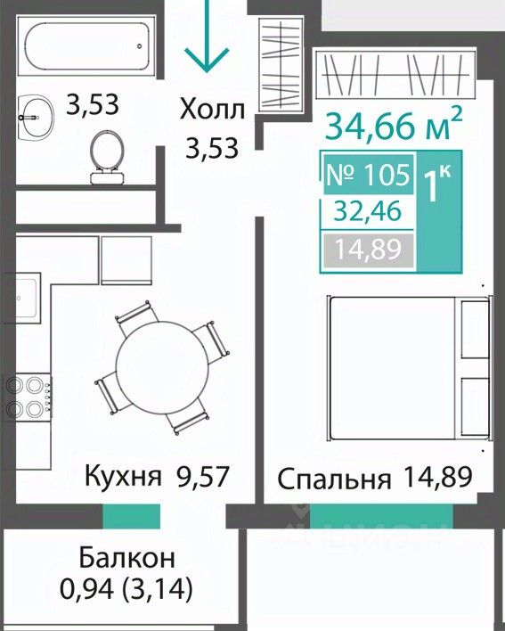 Продаётся 1-комнатная квартира в строящемся доме (ЭТАП 3, СЕКЦИИ В1, В2, В3), срок сдачи: III-кв. 2028, общей площадью 32.46 кв.м., на 6 этаже. Новый жилой комплекс "Семейный квартал ПРОПОЛИС" от застройщика "Монолит" расположен по адресу: Республика Крым, Симферопольский район, с. Мирное, ул. Учительская