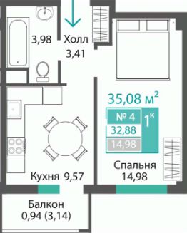 Продаётся 1-комнатная квартира в строящемся доме (ЭТАП 2, СЕКЦИИ Б1, Б2, Б3, Б4), срок сдачи: III-кв. 2028, общей площадью 32.88 кв.м., на 2 этаже. Новый жилой комплекс "Семейный квартал ПРОПОЛИС" от застройщика "Монолит" расположен по адресу: Республика Крым, Симферопольский район, с. Мирное, ул. Учительская
