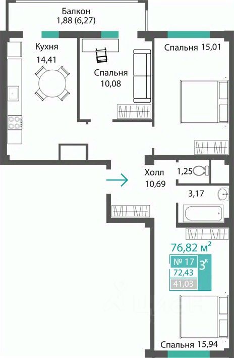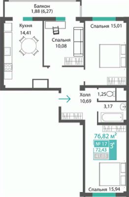 Продаётся 3-комнатная квартира в строящемся доме (ЭТАП 2, СЕКЦИИ Б1, Б2, Б3, Б4), срок сдачи: III-кв. 2028, общей площадью 72.43 кв.м., на 5 этаже. Новый жилой комплекс "Семейный квартал ПРОПОЛИС" от застройщика "Монолит" расположен по адресу: Республика Крым, Симферопольский район, с. Мирное, ул. Учительская