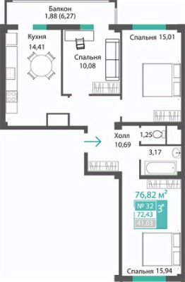 Продаётся 3-комнатная квартира в строящемся доме (ЭТАП 2, СЕКЦИИ Б1, Б2, Б3, Б4), срок сдачи: III-кв. 2028, общей площадью 72.43 кв.м., на 8 этаже. Новый жилой комплекс "Семейный квартал ПРОПОЛИС" от застройщика "Монолит" расположен по адресу: Республика Крым, Симферопольский район, с. Мирное, ул. Учительская