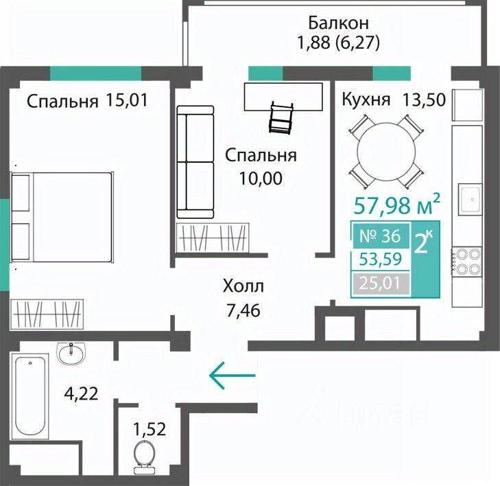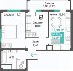 Продаётся 2-комнатная квартира в строящемся доме (ЭТАП 2, СЕКЦИИ Б1, Б2, Б3, Б4), срок сдачи: III-кв. 2028, общей площадью 53.59 кв.м., на 8 этаже. Новый жилой комплекс "Семейный квартал ПРОПОЛИС" от застройщика "Монолит" расположен по адресу: Республика Крым, Симферопольский район, с. Мирное, ул. Учительская