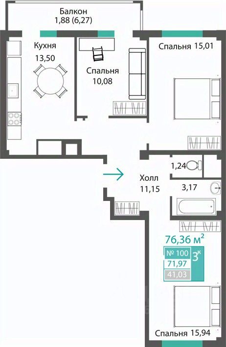 Продаётся 3-комнатная квартира в строящемся доме (ЭТАП 2, СЕКЦИИ Б1, Б2, Б3, Б4), срок сдачи: III-кв. 2028, общей площадью 71.97 кв.м., на 5 этаже. Новый жилой комплекс "Семейный квартал ПРОПОЛИС" от застройщика "Монолит" расположен по адресу: Республика Крым, Симферопольский район, с. Мирное, ул. Учительская