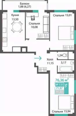 Продаётся 3-комнатная квартира в строящемся доме (ЭТАП 2, СЕКЦИИ Б1, Б2, Б3, Б4), срок сдачи: III-кв. 2028, общей площадью 71.97 кв.м., на 3 этаже. Новый жилой комплекс "Семейный квартал ПРОПОЛИС" от застройщика "Монолит" расположен по адресу: Республика Крым, Симферопольский район, с. Мирное, ул. Учительская