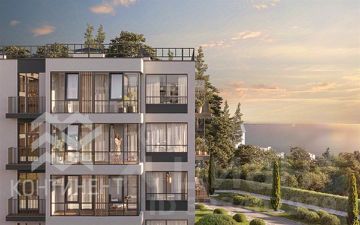 Во всех квартирах имеются большие террасы с великолепным видом на Черное море или горную местность.