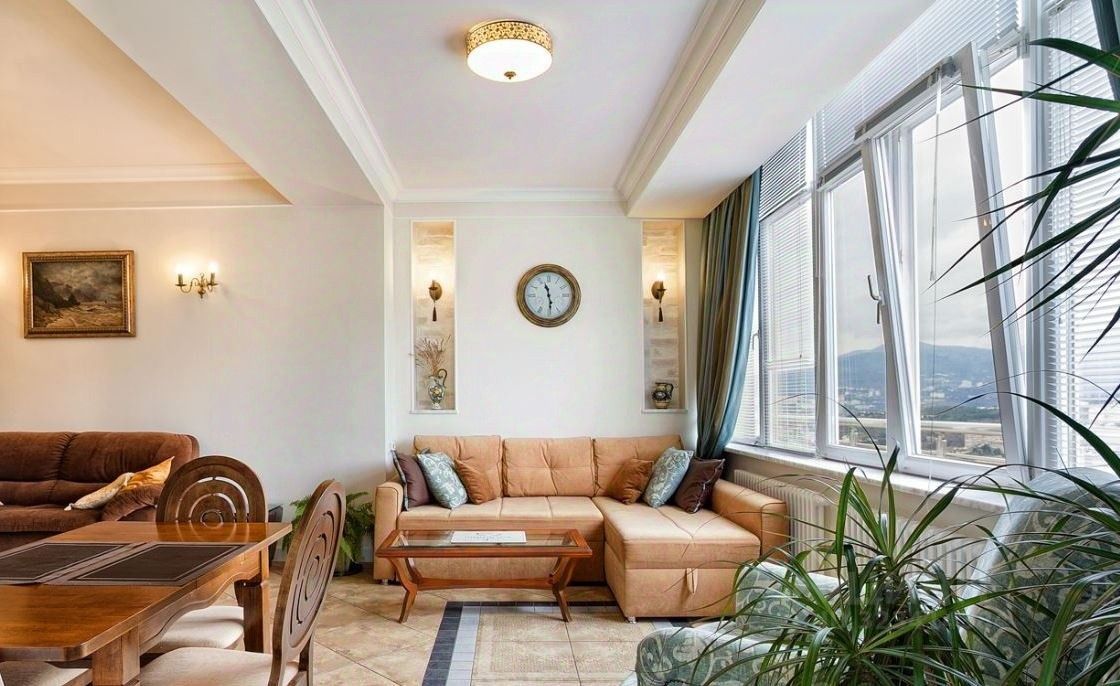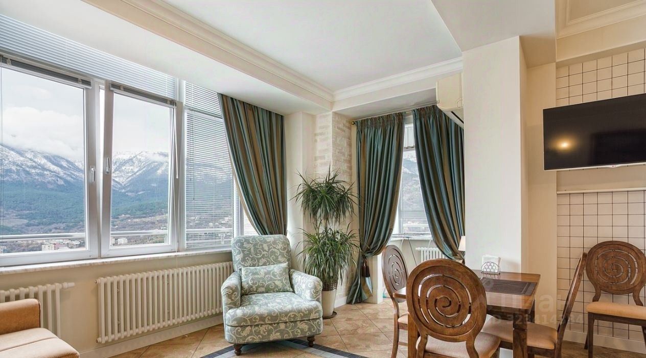 С окон квартиры открывается бесподобный вид на горы, Ялту и немного море.