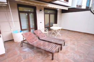 Общая площадь - 33 м2.+ 15 м2 роскошная открытая терраса, на которой летом можно практически жить....поставить лежаки, ротанговую мебель для отдыха, надувной бассейн для деток и т.д. Расположена на 1 этаже/ уровень 3, так как два этажа наземного паркинга.