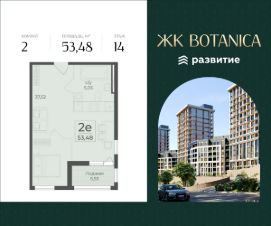 Продается квартира площадью 53.48 кв. м с отделкой white box на 14 этаже 15 этажного дома. Квартира находится в 6 секции жилого комплекса бизнес-класса Botanica.
