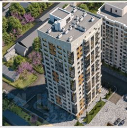 Монолитно-каркасный 16-этажный дом выполнен в современном стиле. Фасад из керамогранита светлых тонов с витражными системами остекления подчеркивает непринуждённый и гармоничный внешний вид здания.