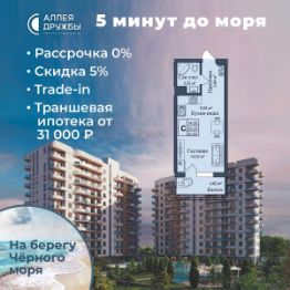ЗВОНИТЕ ПРЯМО СЕЙЧАС, ЧТОБЫ ПОЛУЧИТЬ ВЫГОДУ ДО 650 000 руб! Цена указана со скидкой 5% при условии 100% оплаты либо ипотека. АКЦИИ: * Ипотека от 14,7% * ТРАНШЕВАЯ ИПОТЕКА - ПВ от 20%, платежи от 31000 в месяц * Рассрочка 0% до 2028г. ПВ от 20% * Скидка 5% * Бронь на 30 дней * 5 мин до моря пешком, планировки от 30 кв.м. * Высота потолков 3 м , предчистовая и чистовая отделка * Ипотека от СБЕРБАНКА * Доходность инвестиций от 30% годовых. * Сдача в аренду от управляющей компании (доверительное управление) позволяет получать доход от сдачи апартаментов без вашего участия * Безопасная сделка по ФЗ-214/эскроу-счёта "Аллея Дружбы" — это комплекс апартаментов бизнес-класса в Евпатории, расположенный в 5 минутах прогулки от золотистых пляжей Чёрного моря. Два современных 12-этажных корпуса с панорамными видами на море объединены стильным стилобатом с центральным входом и бутиковыми retail-площадями, а закрытая территория и подземный паркинг обеспечивает приватность и безопасность. АРХИТЕКТУРА И КОНСТРУКТИВНЫЕ ОСОБЕННОСТИ: • 12-этажное здание в авторском архитектурном стиле • Высота потолков (от 2,9 м до 3,1 м) • Эксклюзивное решение для первых этажей (высота потолков 3,4м) • Евро планировки с террасами и гардеробными • Панорамное ламинированное остекление • Индивидуальные келлеры • Видовые лоты на море • Высокоскоростные лифты по концепции 5* отеля • Предусмотрено резервное электроснабжение • По проекту предусмотрено место для кондиционера и практическое решение для маскировки коммуникаций ЛОКАЦИЯ И ОКРУЖЕНИЕ: • До центра Евпатории - 7 минут на машине • Пляж - всего 5 минут пешком • Рядом с комплексом развитая инфраструктура (рестораны, магазины, кафе, медицинские учреждения, санатории) ГОСТЕПРИИМСТВО И БЕЗУПРЕЧНЫЕ СЕРВИСЫ: • Управляющая компания премиум-класса • Консъерж-сервис 24/7 • Доставки продуктов и готовой еды • Зона ресепшн оформлена в стилистике комплекса • Лобби с атмосферным кафе и зонами для чтения • Премиальное решение для мест общего пользования • Интерактивная детская комната для самых маленьких • Пункты выдачи товаров от маркетплейсов • Гостевые парковочные места • Организовано место для хранения колясок ваших малышей • Ремонт на выбор "Комфорт-формат" и "Гранд-формат" БЕЗОПАСНОСТЬ И ТЕХНОЛОГИИ СПОКОЙСТВИЯ: • Закрытая территория, двор без машин • Система контроля доступа (строго по электронным пропускам) • Подземный паркинг с тремя типами машиномест • Выделенные места для велосипедов • Камеры видеонаблюдения • Круглосуточный ресепшн • Телеметрия - автоматический сбор и передача данных с приборов учета апартамента минимизирует ошибки и мошенничество • Система умного апартамента с дистанционным управлением БЛАГОУСТРОЙСТВО ТЕРРИТОРИИ: • Ландшафтный дизайн по проекту (2 334 м² озеленения) • Прогулочные аллеи и зоны отдыха для расслабления и медитации • Коворкинг-зоны с высокоскоростным Wi-Fi для бизнес-переговоров • Детские и спортивные площадки • В апарт-комплексе вас ждут мини-маркет и магазин повседневных товаров