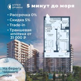 ЗВОНИТЕ ПРЯМО СЕЙЧАС, ЧТОБЫ ПОЛУЧИТЬ ВЫГОДУ ДО 650 000 руб! Цена указана со скидкой 5% при условии 100% оплаты либо ипотека. АКЦИИ: * Ипотека от 14,7% * ТРАНШЕВАЯ ИПОТЕКА - ПВ от 20%, платежи от 31000 в месяц * Рассрочка 0% до 2028г. ПВ от 20% * Скидка 5% * Бронь на 30 дней * 5 мин до моря пешком, планировки от 30 кв.м. * Высота потолков 3 м , предчистовая и чистовая отделка * Ипотека от СБЕРБАНКА * Доходность инвестиций от 30% годовых. * Сдача в аренду от управляющей компании (доверительное управление) позволяет получать доход от сдачи апартаментов без вашего участия * Безопасная сделка по ФЗ-214/эскроу-счёта "Аллея Дружбы" — это комплекс апартаментов бизнес-класса в Евпатории, расположенный в 5 минутах прогулки от золотистых пляжей Чёрного моря. Два современных 12-этажных корпуса с панорамными видами на море объединены стильным стилобатом с центральным входом и бутиковыми retail-площадями, а закрытая территория и подземный паркинг обеспечивает приватность и безопасность. АРХИТЕКТУРА И КОНСТРУКТИВНЫЕ ОСОБЕННОСТИ: • 12-этажное здание в авторском архитектурном стиле • Высота потолков (от 2,9 м до 3,1 м) • Эксклюзивное решение для первых этажей (высота потолков 3,4м) • Евро планировки с террасами и гардеробными • Панорамное ламинированное остекление • Индивидуальные келлеры • Видовые лоты на море • Высокоскоростные лифты по концепции 5* отеля • Предусмотрено резервное электроснабжение • По проекту предусмотрено место для кондиционера и практическое решение для маскировки коммуникаций ЛОКАЦИЯ И ОКРУЖЕНИЕ: • До центра Евпатории - 7 минут на машине • Пляж - всего 5 минут пешком • Рядом с комплексом развитая инфраструктура (рестораны, магазины, кафе, медицинские учреждения, санатории) ГОСТЕПРИИМСТВО И БЕЗУПРЕЧНЫЕ СЕРВИСЫ: • Управляющая компания премиум-класса • Консъерж-сервис 24/7 • Доставки продуктов и готовой еды • Зона ресепшн оформлена в стилистике комплекса • Лобби с атмосферным кафе и зонами для чтения • Премиальное решение для мест общего пользования • Интерактивная детская комната для самых маленьких • Пункты выдачи товаров от маркетплейсов • Гостевые парковочные места • Организовано место для хранения колясок ваших малышей • Ремонт на выбор "Комфорт-формат" и "Гранд-формат" БЕЗОПАСНОСТЬ И ТЕХНОЛОГИИ СПОКОЙСТВИЯ: • Закрытая территория, двор без машин • Система контроля доступа (строго по электронным пропускам) • Подземный паркинг с тремя типами машиномест • Выделенные места для велосипедов • Камеры видеонаблюдения • Круглосуточный ресепшн • Телеметрия - автоматический сбор и передача данных с приборов учета апартамента минимизирует ошибки и мошенничество • Система умного апартамента с дистанционным управлением БЛАГОУСТРОЙСТВО ТЕРРИТОРИИ: • Ландшафтный дизайн по проекту (2 334 м² озеленения) • Прогулочные аллеи и зоны отдыха для расслабления и медитации • Коворкинг-зоны с высокоскоростным Wi-Fi для бизнес-переговоров • Детские и спортивные площадки • В апарт-комплексе вас ждут мини-маркет и магазин повседневных товаров
