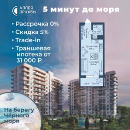 ЗВОНИТЕ ПРЯМО СЕЙЧАС, ЧТОБЫ ПОЛУЧИТЬ ВЫГОДУ ДО 650 000 руб! Цена указана со скидкой 5% при условии 100% оплаты либо ипотека. АКЦИИ: * Ипотека от 14,7% * ТРАНШЕВАЯ ИПОТЕКА - ПВ от 20%, платежи от 31000 в месяц * Рассрочка 0% до 2028г. ПВ от 20% * Скидка 5% * Бронь на 30 дней * 5 мин до моря пешком, планировки от 30 кв.м. * Высота потолков 3 м , предчистовая и чистовая отделка * Ипотека от СБЕРБАНКА * Доходность инвестиций от 30% годовых. * Сдача в аренду от управляющей компании (доверительное управление) позволяет получать доход от сдачи апартаментов без вашего участия * Безопасная сделка по ФЗ-214/эскроу-счёта "Аллея Дружбы" — это комплекс апартаментов бизнес-класса в Евпатории, расположенный в 5 минутах прогулки от золотистых пляжей Чёрного моря. Два современных 12-этажных корпуса с панорамными видами на море объединены стильным стилобатом с центральным входом и бутиковыми retail-площадями, а закрытая территория и подземный паркинг обеспечивает приватность и безопасность. АРХИТЕКТУРА И КОНСТРУКТИВНЫЕ ОСОБЕННОСТИ: • 12-этажное здание в авторском архитектурном стиле • Высота потолков (от 2,9 м до 3,1 м) • Эксклюзивное решение для первых этажей (высота потолков 3,4м) • Евро планировки с террасами и гардеробными • Панорамное ламинированное остекление • Индивидуальные келлеры • Видовые лоты на море • Высокоскоростные лифты по концепции 5* отеля • Предусмотрено резервное электроснабжение • По проекту предусмотрено место для кондиционера и практическое решение для маскировки коммуникаций ЛОКАЦИЯ И ОКРУЖЕНИЕ: • До центра Евпатории - 7 минут на машине • Пляж - всего 5 минут пешком • Рядом с комплексом развитая инфраструктура (рестораны, магазины, кафе, медицинские учреждения, санатории) ГОСТЕПРИИМСТВО И БЕЗУПРЕЧНЫЕ СЕРВИСЫ: • Управляющая компания премиум-класса • Консъерж-сервис 24/7 • Доставки продуктов и готовой еды • Зона ресепшн оформлена в стилистике комплекса • Лобби с атмосферным кафе и зонами для чтения • Премиальное решение для мест общего пользования • Интерактивная детская комната для самых маленьких • Пункты выдачи товаров от маркетплейсов • Гостевые парковочные места • Организовано место для хранения колясок ваших малышей • Ремонт на выбор "Комфорт-формат" и "Гранд-формат" БЕЗОПАСНОСТЬ И ТЕХНОЛОГИИ СПОКОЙСТВИЯ: • Закрытая территория, двор без машин • Система контроля доступа (строго по электронным пропускам) • Подземный паркинг с тремя типами машиномест • Выделенные места для велосипедов • Камеры видеонаблюдения • Круглосуточный ресепшн • Телеметрия - автоматический сбор и передача данных с приборов учета апартамента минимизирует ошибки и мошенничество • Система умного апартамента с дистанционным управлением БЛАГОУСТРОЙСТВО ТЕРРИТОРИИ: • Ландшафтный дизайн по проекту (2 334 м² озеленения) • Прогулочные аллеи и зоны отдыха для расслабления и медитации • Коворкинг-зоны с высокоскоростным Wi-Fi для бизнес-переговоров • Детские и спортивные площадки • В апарт-комплексе вас ждут мини-маркет и магазин повседневных товаров