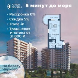 ЗВОНИТЕ ПРЯМО СЕЙЧАС, ЧТОБЫ ПОЛУЧИТЬ ВЫГОДУ ДО 650 000 руб! АКЦИИ: * Ипотека от 14,7% * ТРАНШЕВАЯ ИПОТЕКА - ПВ от 20%, платежи от 31000 в месяц * Рассрочка 0% до 2028г. ПВ от 20% * Скидка 5% * Бронь на 30 дней * 5 мин до моря пешком, планировки от 30 кв.м. * Высота потолков 3 м , предчистовая и чистовая отделка * Ипотека от СБЕРБАНКА * Доходность инвестиций от 30% годовых. * Сдача в аренду от управляющей компании (доверительное управление) позволяет получать доход от сдачи апартаментов без вашего участия * Безопасная сделка по ФЗ-214/эскроу-счёта "Аллея Дружбы" — это комплекс апартаментов бизнес-класса в Евпатории, расположенный в 5 минутах прогулки от золотистых пляжей Чёрного моря. Два современных 12-этажных корпуса с панорамными видами на море объединены стильным стилобатом с центральным входом и бутиковыми retail-площадями, а закрытая территория и подземный паркинг обеспечивает приватность и безопасность. АРХИТЕКТУРА И КОНСТРУКТИВНЫЕ ОСОБЕННОСТИ: • 12-этажное здание в авторском архитектурном стиле • Высота потолков (от 2,9 м до 3,1 м) • Эксклюзивное решение для первых этажей (высота потолков 3,4м) • Евро планировки с террасами и гардеробными • Панорамное ламинированное остекление • Индивидуальные келлеры • Видовые лоты на море • Высокоскоростные лифты по концепции 5* отеля • Предусмотрено резервное электроснабжение • По проекту предусмотрено место для кондиционера и практическое решение для маскировки коммуникаций ЛОКАЦИЯ И ОКРУЖЕНИЕ: • До центра Евпатории - 7 минут на машине • Пляж - всего 5 минут пешком • Рядом с комплексом развитая инфраструктура (рестораны, магазины, кафе, медицинские учреждения, санатории) ГОСТЕПРИИМСТВО И БЕЗУПРЕЧНЫЕ СЕРВИСЫ: • Управляющая компания премиум-класса • Консъерж-сервис 24/7 • Доставки продуктов и готовой еды • Зона ресепшн оформлена в стилистике комплекса • Лобби с атмосферным кафе и зонами для чтения • Премиальное решение для мест общего пользования • Интерактивная детская комната для самых маленьких • Пункты выдачи товаров от маркетплейсов • Гостевые парковочные места • Организовано место для хранения колясок ваших малышей • Ремонт на выбор "Комфорт-формат" и "Гранд-формат" БЕЗОПАСНОСТЬ И ТЕХНОЛОГИИ СПОКОЙСТВИЯ: • Закрытая территория, двор без машин • Система контроля доступа (строго по электронным пропускам) • Подземный паркинг с тремя типами машиномест • Выделенные места для велосипедов • Камеры видеонаблюдения • Круглосуточный ресепшн • Телеметрия - автоматический сбор и передача данных с приборов учета апартамента минимизирует ошибки и мошенничество • Система умного апартамента с дистанционным управлением БЛАГОУСТРОЙСТВО ТЕРРИТОРИИ: • Ландшафтный дизайн по проекту (2 334 м² озеленения) • Прогулочные аллеи и зоны отдыха для расслабления и медитации • Коворкинг-зоны с высокоскоростным Wi-Fi для бизнес-переговоров • Детские и спортивные площадки • В апарт-комплексе вас ждут мини-маркет и магазин повседневных товаров • Специальное пространство для курения • Выделенная площадка для