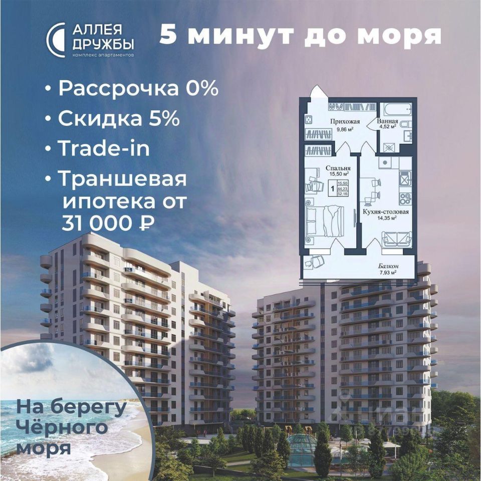ЗВОНИТЕ ПРЯМО СЕЙЧАС, ЧТОБЫ ПОЛУЧИТЬ ВЫГОДУ ДО 650 000 руб! АКЦИИ: * Ипотека от 14,7% * ТРАНШЕВАЯ ИПОТЕКА - ПВ от 20%, платежи от 31000 в месяц * Рассрочка 0% до 2028г. ПВ от 20% * Скидка 5% * Бронь на 30 дней * 5 мин до моря пешком, планировки от 30 кв.м. * Высота потолков 3 м , предчистовая и чистовая отделка * Ипотека от СБЕРБАНКА * Доходность инвестиций от 30% годовых. * Сдача в аренду от управляющей компании (доверительное управление) позволяет получать доход от сдачи апартаментов без вашего участия * Безопасная сделка по ФЗ-214/эскроу-счёта "Аллея Дружбы" — это комплекс апартаментов бизнес-класса в Евпатории, расположенный в 5 минутах прогулки от золотистых пляжей Чёрного моря. Два современных 12-этажных корпуса с панорамными видами на море объединены стильным стилобатом с центральным входом и бутиковыми retail-площадями, а закрытая территория и подземный паркинг обеспечивает приватность и безопасность. АРХИТЕКТУРА И КОНСТРУКТИВНЫЕ ОСОБЕННОСТИ: • 12-этажное здание в авторском архитектурном стиле • Высота потолков (от 2,9 м до 3,1 м) • Эксклюзивное решение для первых этажей (высота потолков 3,4м) • Евро планировки с террасами и гардеробными • Панорамное ламинированное остекление • Индивидуальные келлеры • Видовые лоты на море • Высокоскоростные лифты по концепции 5* отеля • Предусмотрено резервное электроснабжение • По проекту предусмотрено место для кондиционера и практическое решение для маскировки коммуникаций ЛОКАЦИЯ И ОКРУЖЕНИЕ: • До центра Евпатории - 7 минут на машине • Пляж - всего 5 минут пешком • Рядом с комплексом развитая инфраструктура (рестораны, магазины, кафе, медицинские учреждения, санатории) ГОСТЕПРИИМСТВО И БЕЗУПРЕЧНЫЕ СЕРВИСЫ: • Управляющая компания премиум-класса • Консъерж-сервис 24/7 • Доставки продуктов и готовой еды • Зона ресепшн оформлена в стилистике комплекса • Лобби с атмосферным кафе и зонами для чтения • Премиальное решение для мест общего пользования • Интерактивная детская комната для самых маленьких • Пункты выдачи товаров от маркетплейсов • Гостевые парковочные места • Организовано место для хранения колясок ваших малышей • Ремонт на выбор "Комфорт-формат" и "Гранд-формат" БЕЗОПАСНОСТЬ И ТЕХНОЛОГИИ СПОКОЙСТВИЯ: • Закрытая территория, двор без машин • Система контроля доступа (строго по электронным пропускам) • Подземный паркинг с тремя типами машиномест • Выделенные места для велосипедов • Камеры видеонаблюдения • Круглосуточный ресепшн • Телеметрия - автоматический сбор и передача данных с приборов учета апартамента минимизирует ошибки и мошенничество • Система умного апартамента с дистанционным управлением БЛАГОУСТРОЙСТВО ТЕРРИТОРИИ: • Ландшафтный дизайн по проекту (2 334 м² озеленения) • Прогулочные аллеи и зоны отдыха для расслабления и медитации • Коворкинг-зоны с высокоскоростным Wi-Fi для бизнес-переговоров • Детские и спортивные площадки • В апарт-комплексе вас ждут мини-маркет и магазин повседневных товаров • Специальное пространство для курения • Выделенная площадка для